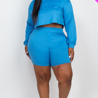Jess | Plus Size Cozy Crop Top And Shorts Set