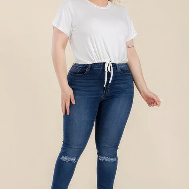 Collette | Plus Size Tie Front Drawstring Short Sleeve Crop Top