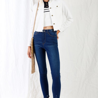 Dark Blue High-waisted With Rips Skinny Denim Jeans