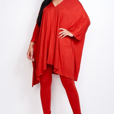 Dea | Solid Heavy Rayon Spandex Cape Top And And Leggings 2 Piece Set